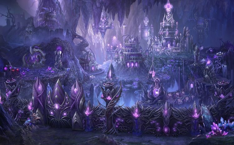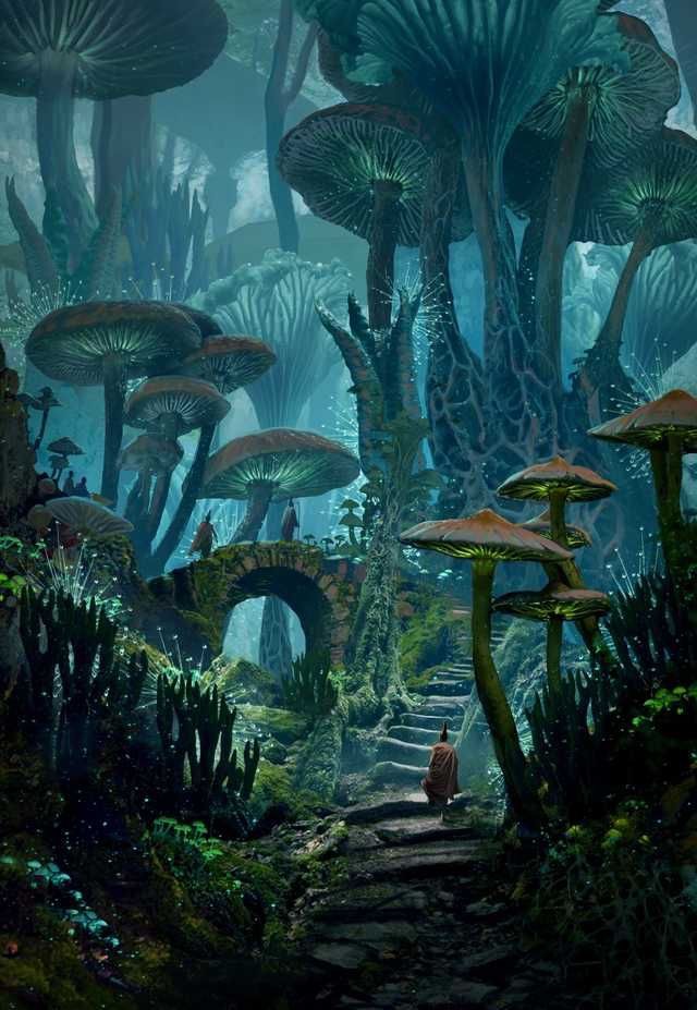 空を覆うほどに大きく育った樹木が天光を遮り、それに代わって発光する草木や菌類が行く人々の視界を照らし出す大森林で、ヴィーザル大森林を北方へ進み大渓谷を抜けた先に存在する。